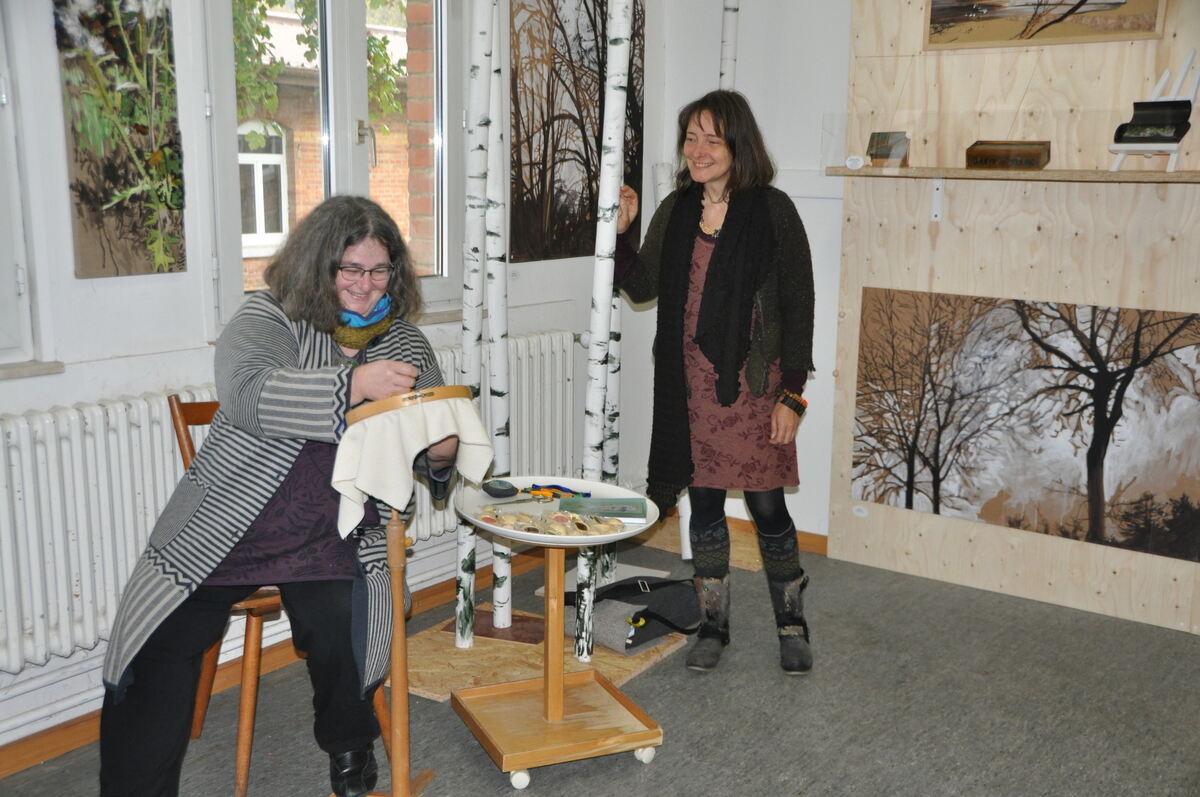 Martina Kölbl-Ebert (links) und Isabel Fuchs kennen sich mit Kunst, Nadel und Faden aus. FOTO: BIMEK