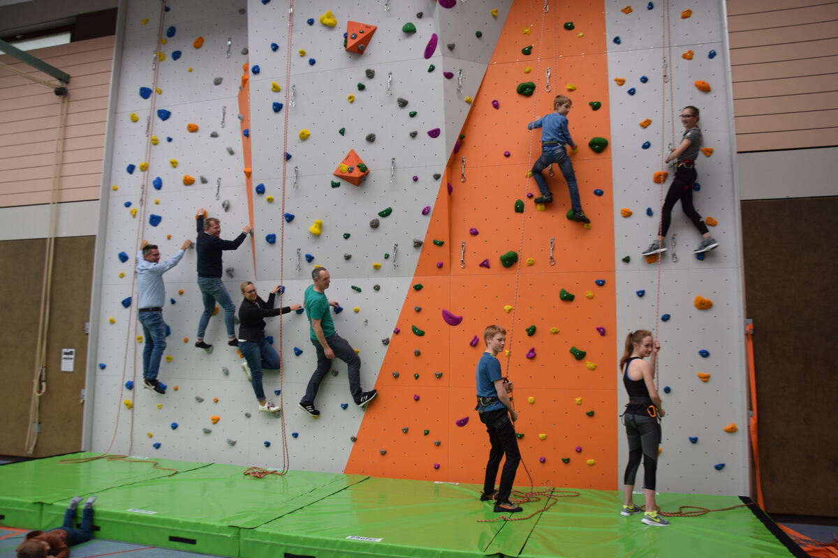 Hoch hinaus in der Kletterwand in der Beutenlay-Halle