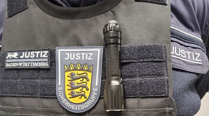 Justizbeamte der Sicherheitsgruppe der Gerichte und Staatsanwaltschaften waren im Gericht und kontrollierten alle Prozess-Beteiligten und Besucher.