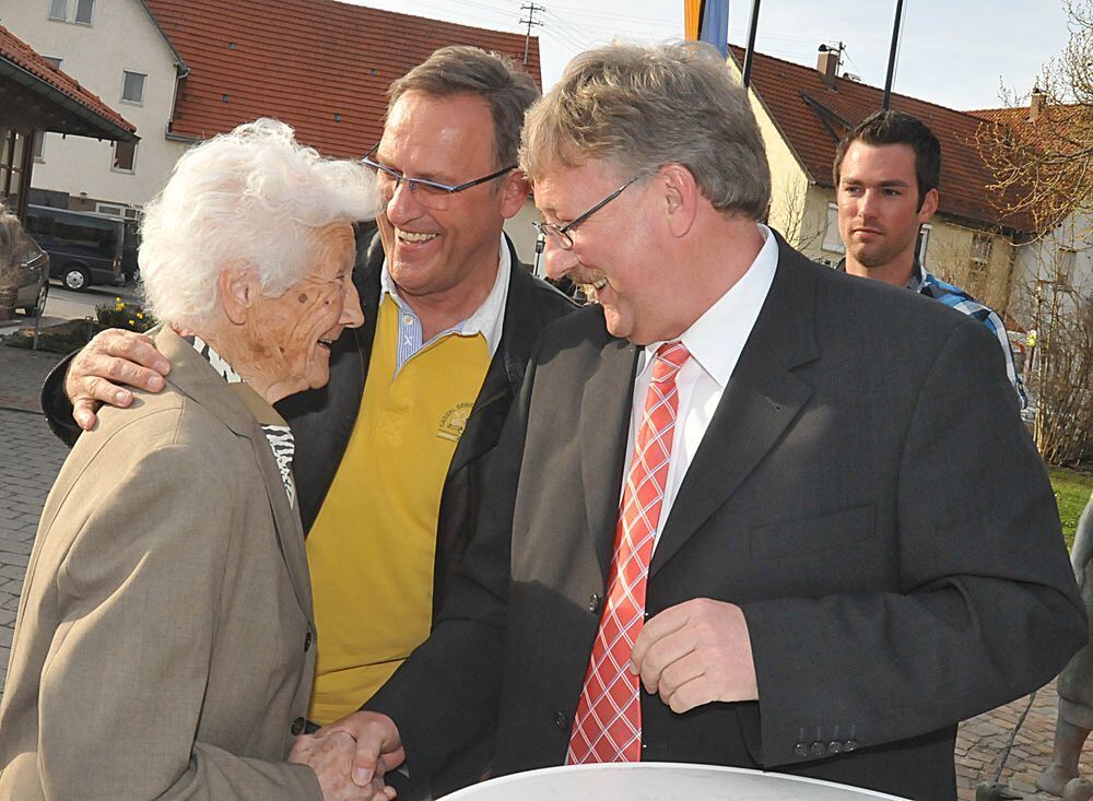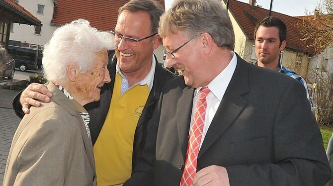 Gratulanten zuhauf: Klemens Betz(50) wurde heute als Gomadingens Bürgermeister wiedergewählt. Foto: Trinkhaus