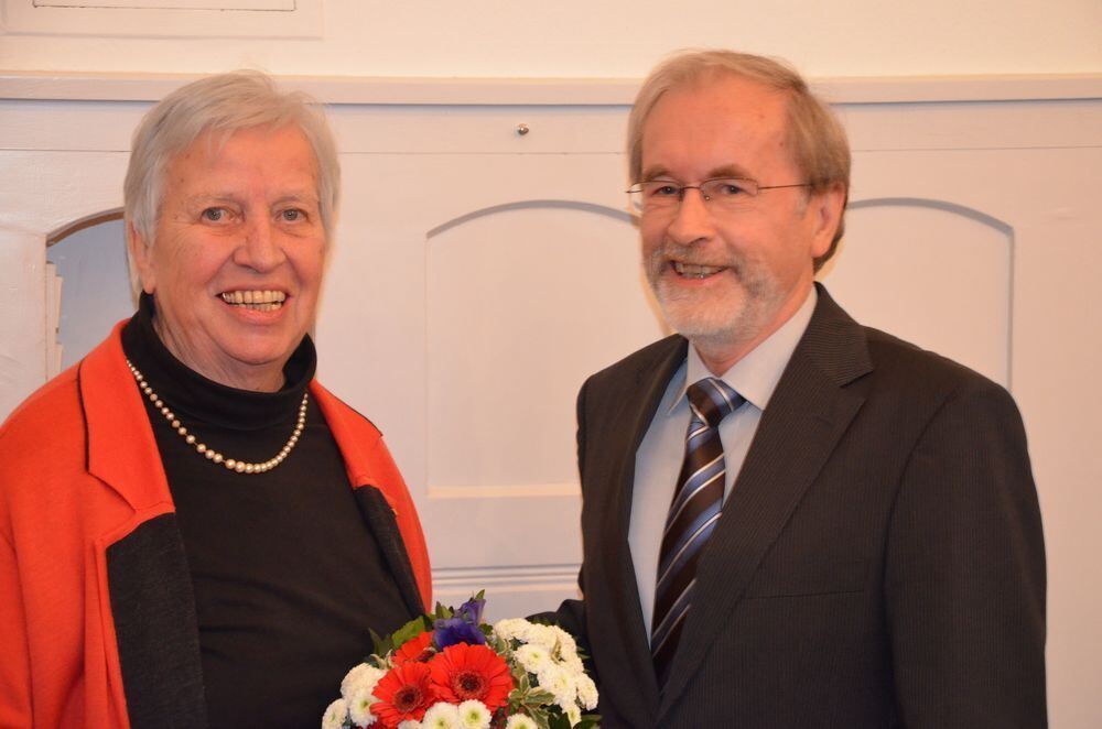 Elke Hagmaier (links) mit Bürgermeister Rudolf Heß, der in der Haushaltsdebatte im Pfullinger Gemeinderat zur Auszeichnung gratulierte.
