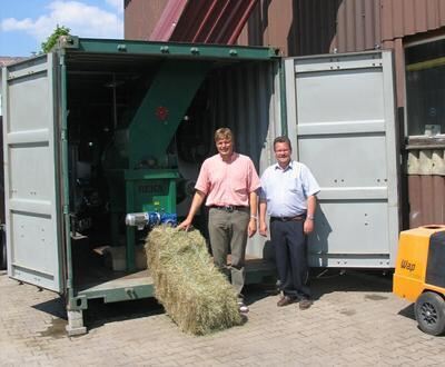 »Pack' den Heuballen in den Brenner« lautet die Devise von Dr. Hans Oechsner (links) von der Uni Hohenheim und Golfplatz-Inhaber Erich Renz.