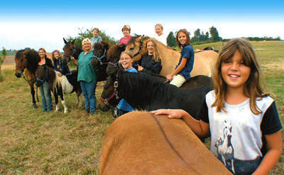 Das Glück der Erde liegt auf dem Rücken der Pferde. Auf ihrem »Reitzeit«-Hof in Upfingen bietet Eva Baumann (3. von links) unter anderem Reiterferien an. Gleich an drei Reiterhöfen beziehungsweisee Gestüten führt die Albhof-Tour Nummer eins vorbei.
