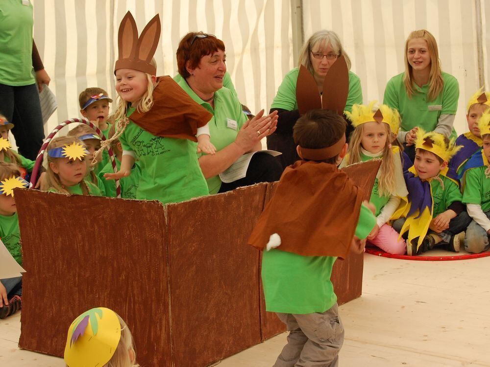 Die »Jahresuhr« brachten die Trochtelfinger Kindergartenkinder als herzerfrischendes szenisches Spiel auf die Bühne des Festzelts. FOTO: HÄUSSLER