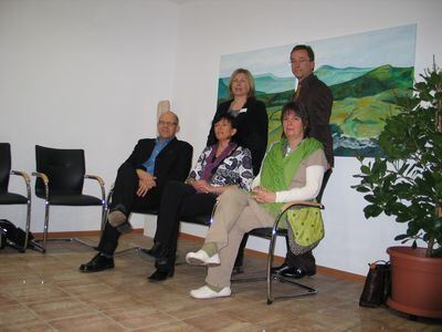 Ansprechpartner in der Engstinger Ambulanz (von links): Oberarzt Dr. Alexander Baier, die medizinische Fachangestellte Elvira Vogel-Lauterbach, Dr. Christine Göhring-Premer (stehend), Chefarzt Dr. Frank Schwärzler und Diplom-Pädagogin Karin Hoffmann.