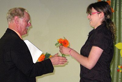 Zum Abschied erhielt Walter Gans Blümchen von Nadja Pawtowski, der Schülersprecherin der