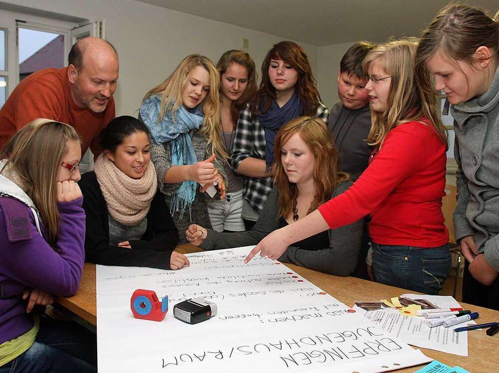 So sieht er sich am liebsten: Michael Nehring (vor dem Fenster) als Ratgeber aus dem Hintergrund, hier beim Sonnenbühler Jugendforum im Herbst 2011.