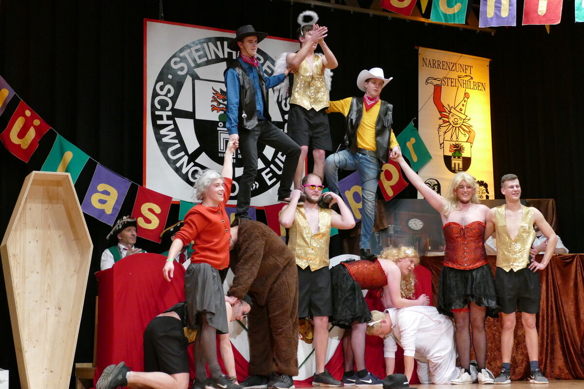 Mit akrobatischen Vorführungen und originellen Wortbeiträgen beeindruckten die Akteure am Wochenende bei den beiden Bürgerbällen in Steinhilben. FOTO: HÄUSSLER