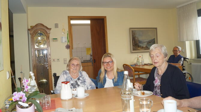 Seit Jahresanfang ist Tanja Hermann (Mitte) neue Leiterin des Städtischen Altenpflegeheims St. Elisabeth in Gammertingen. Hier unterhält sie sich mit den Bewohnerinnen Anna Herre und Ingrid Brachmann. FOTO: WURSTER