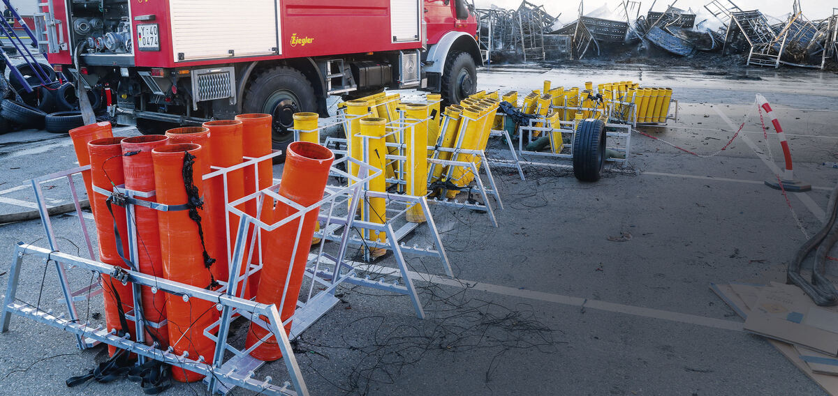 Die Abschussanlage für das Feuerwerk für die Hochzeit des Inhabers von Reifen Göggel.