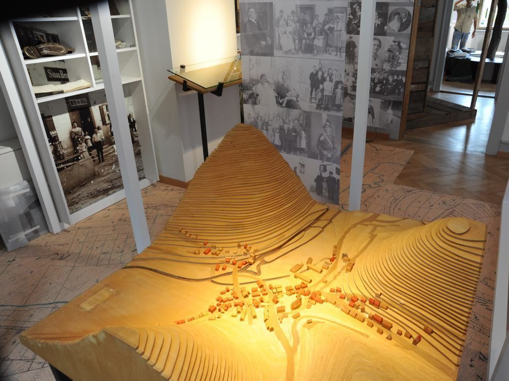 Ein Modell Buttenhausens, rot markiert die Häuser jüdischer Familien. FOTO: STEFAN HARTMAIER