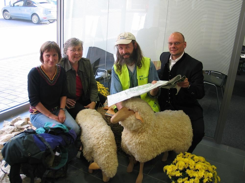 Susanne Volzer, Rita Goller und Andreas Jannek, von links, sind die Sprecher der 24 Trüp-Guides in Münsingen, die zusammen mit Touristik-Chef Bernd-Matthias Weckler für 2011 bereits wieder neue Touren planen.