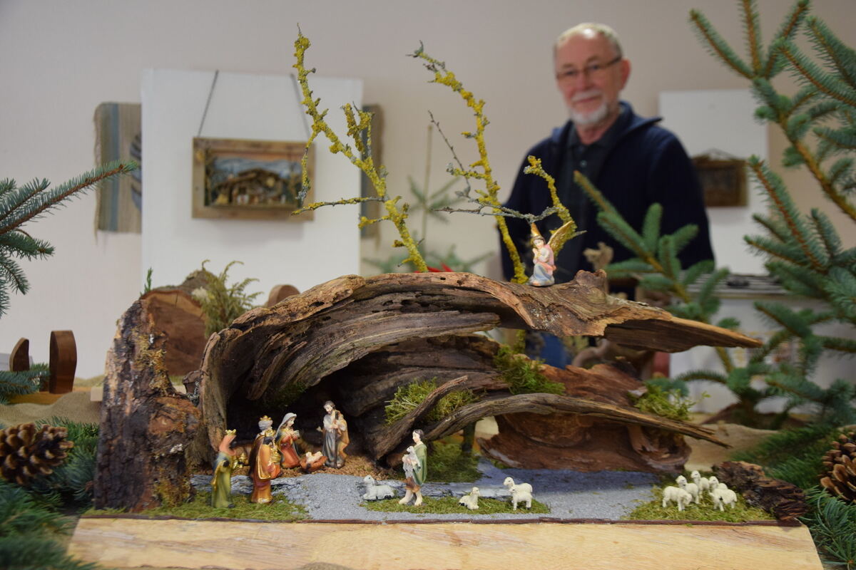 Seit gut zwanzig Jahren pflegt Rainer Gauger dieses Hobby, angeregt durch einen Kurs beim Würtinger Krippenbauer Christian Harter. Kein einziges seiner Werke hat er verkauft, höchstens eines im Familien- und Freundeskreis verschenkt. »Denn es ist ja jede die Erste«, sagt Gauger selbst über seine so ganz unterschiedlichen Krippenlandschaften.