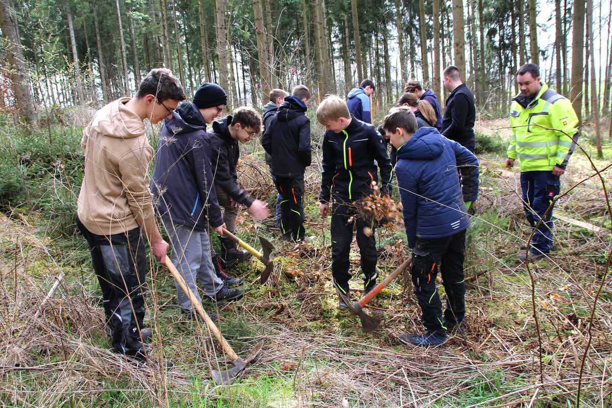 Mitglieder der Jugendfeuerwehr Engstingen pflanzen 2 000 Buchenwildlinge im Gemeindewald.