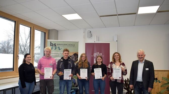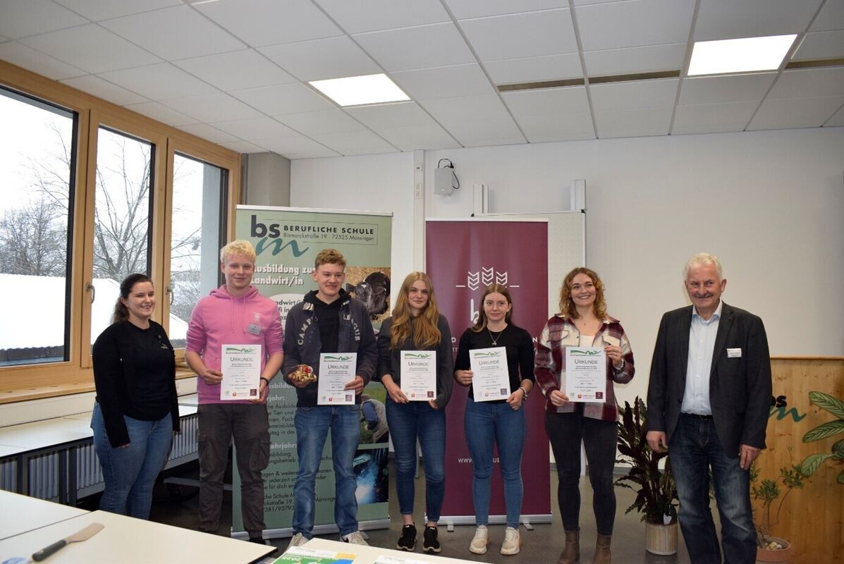 Bei der Siegerehrung überreichten Aierstock und Thomas Pfeifle, Geschäftsführer des Kreisbauernverbands, zahlreiche Geschenke. Den ersten Platz belegte Alexandra Wißmann. Zur Überraschung aller lagen auf Platz 2 drei Teilnehmende mit der exakt gleichen Punktzahl: Marco Röschel, Jo Jakob Ruben und Salome Weiblen. Anders als vorgesehen rücken somit vier statt zwei Auszubildende zum Verbandsentscheid vor, der vom 18. bis 19. März ebenfalls in Münsingen stattfinden wird. (eg)