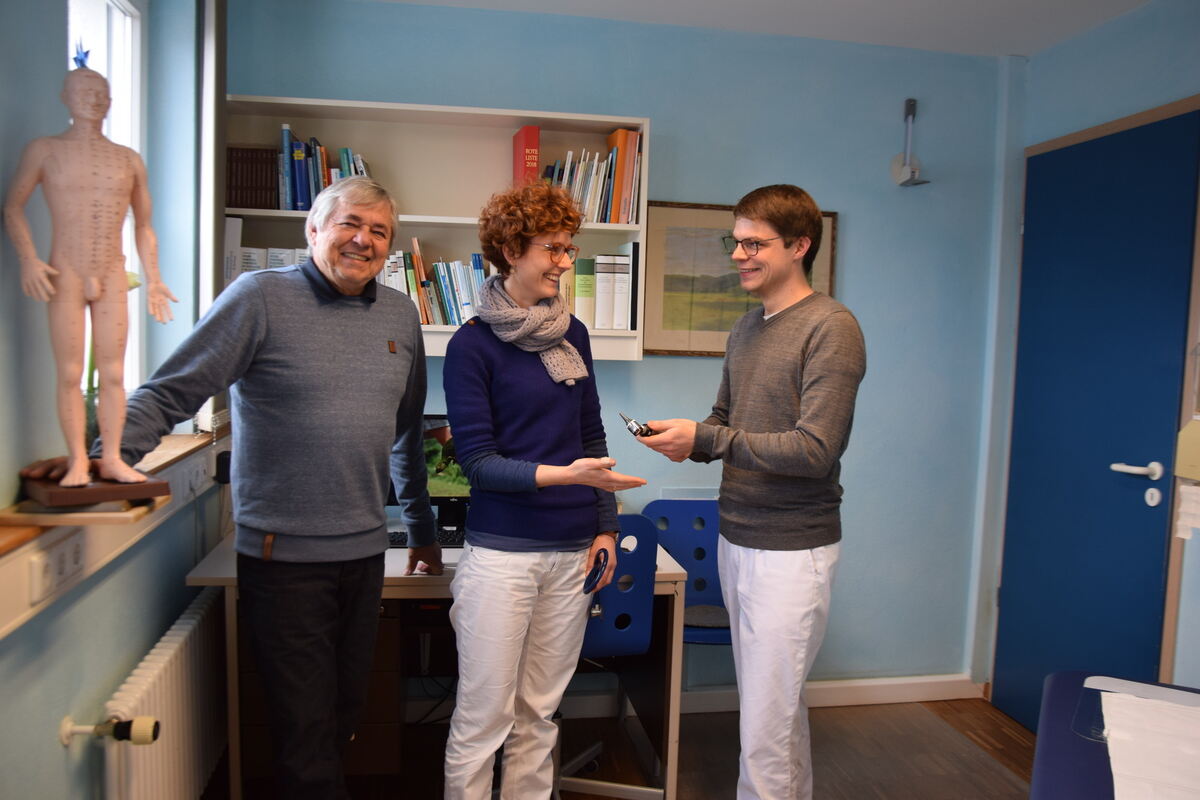 Dr. Carolin Sigle, 36, ist ein weiterer Glücksfall für Gomadingen. Sigle macht in wenigen Monaten ihren Facharzt, und ihr Weiterbilder ist Hans Scheub. Sie ist ebenfalls in der Landarztpraxis angestellt. Dr. Hans Scheub bleibt der Praxis zumindest noch so lange erhalten, bis die täglich aus Reutlingen auf die Alb pendelnde Carolin Sigle ihre Fortbildung abgeschlossen hat. Akupunktur – dafür ist die Praxis bekannt – wird es weiterhin geben. (GEA)