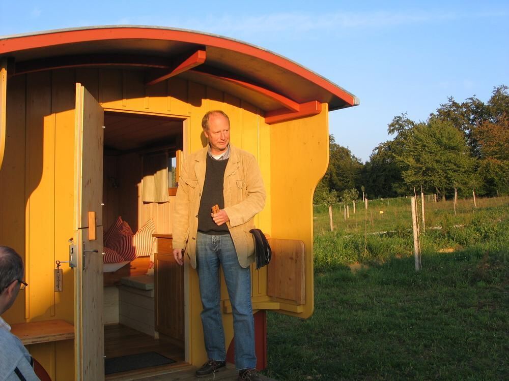 Die Natur hat auf dem Naturcampingplatz auf der Hopfenburg Vorrang: Mitbetreiber Andreas Hartmaier, rechts, hat die Schäferkarren, Zirkuswagen und »Roulettes« nach historischem Vorbild bauen lassen und sie nach eigenen Entwürfen ausgestattet.