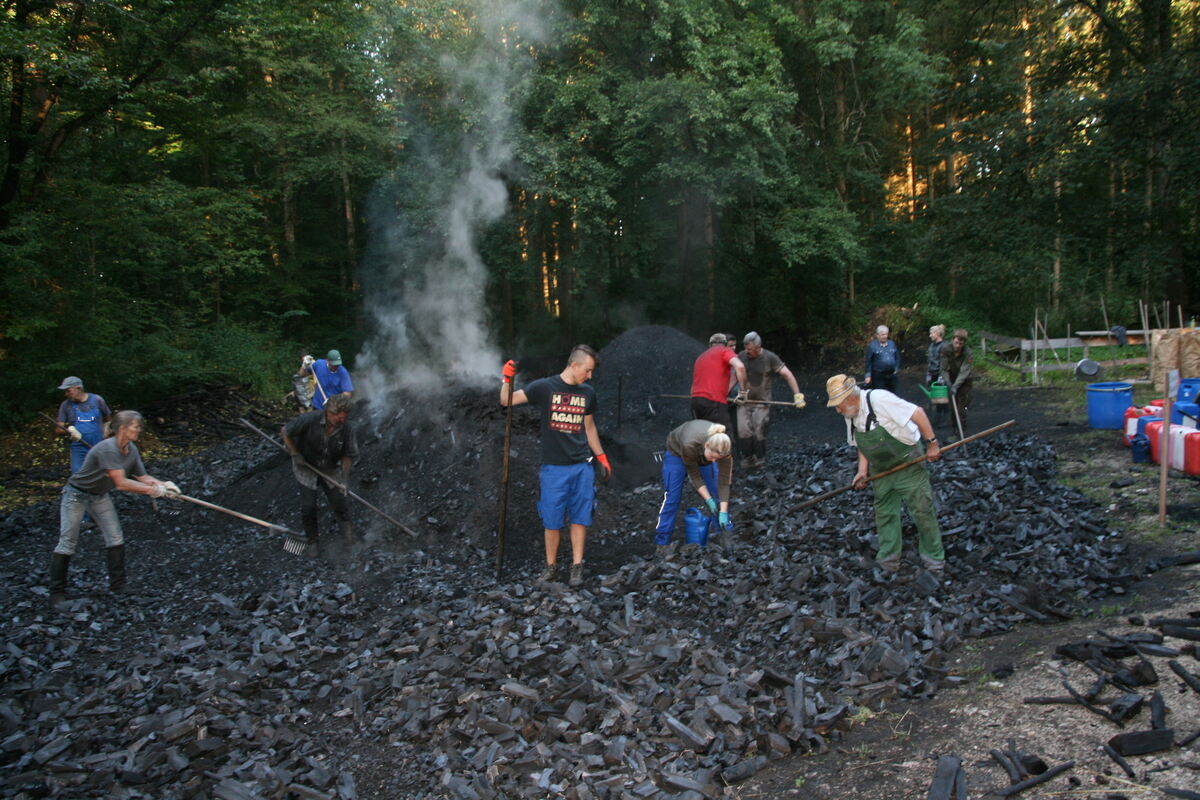 Köhlerei in Corona-Zeiten: Meiler bei Münzdorf hat in aller Stille ausgeraucht