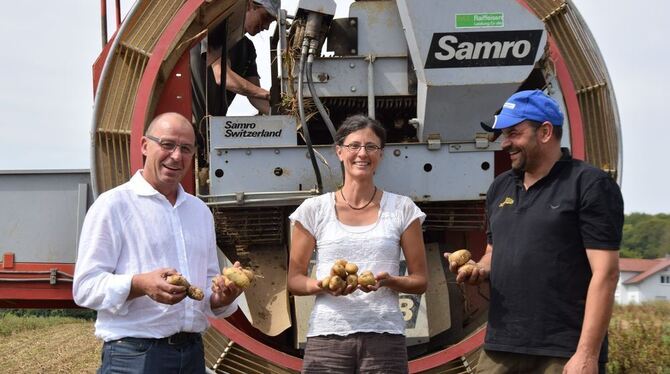 ST. JOHANN/BAD URACH. »Wir haben uns etwas Neues ausgedacht«, eröffnet Elke Weidinger, als Leiterin des Kreislandwirtschaftsamts Münsingen eine der Akteurinnen des Kartoffelfests, das wie gewohnt in der letzten Ferienwoche, am Mittwoch, 6. September, auf dem Gestütshof St. Johann steigen wird: »Eine Ruhe-Insel, die ist gleich gegenüber dem Metzinger Wein und einen Streichelzoo mit den Schnecken von Rita Goller«.