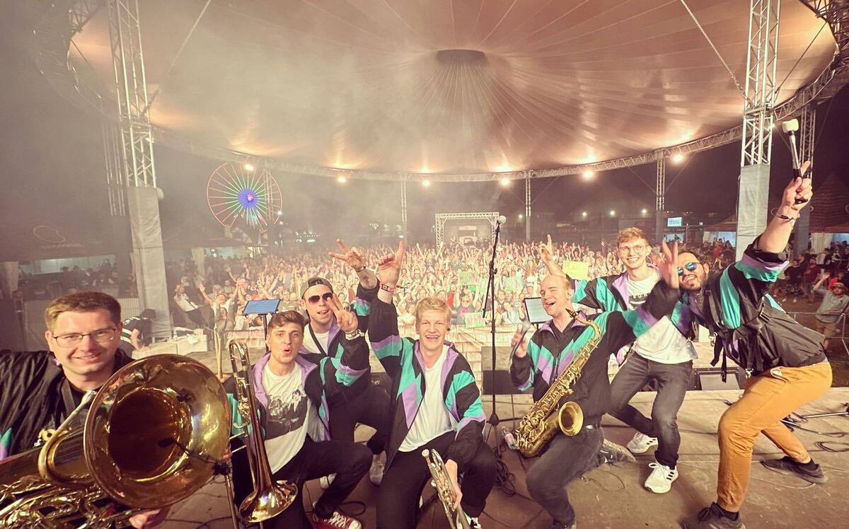 Am Samstag, 24. August, gibt es ab 20.30 Uhr mit Tumult Electronic Brass auf die Ohren. Ein DJ-Set interpretiert von einer Marching Band – das ist die Band Tumult. Mit ihrem selbst kreierten Gerne »Electronic Brass« hat die Formation ihren unverwechselbaren Sound gefunden. Es treffen klassische Elemente der Blasmusik auf moderne Sounds aus Electronic, Techno und House. Eine Symbiose, die einen ungeahnten Drive erzeugt. Vier Bläser, zwei Schlagzeuger und ein Vibraphonist bringen eine unglaubliche Power auf die Bühne und das Publikum zum Abshaken.