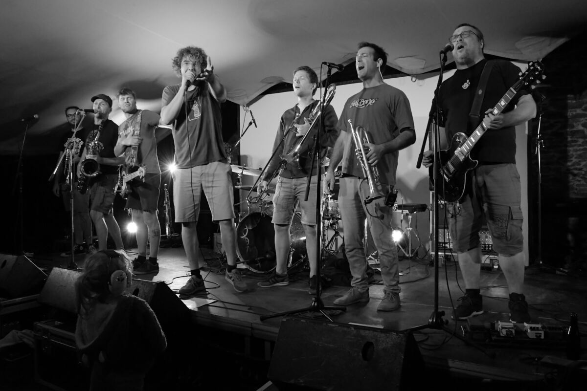Am Freitag, 23. August, steht ab 20.30 Uhr die Band Skarbone14 auf der Bühne. Mit ihrem Stil zwischen Ska, Rock und Worldmusic ist Skarbone14 über Europa, Kanada und Burkina Faso hinweggefegt, heißt es in der Ankündigung Ob sie in Pubs, Clubs oder auf Festivals spielt, überall begeistert sie mit ihrer hoch energetischen Vorstellung. Nach mehr als 700 Gigs in 21 Jahren gibt es keinen Zweifel, dass Skarbone14 eine Band ist, die für die Bühne geschaffen ist und die Musiker für ihre Show geboren sind. Mit strammen Grooves, einem fetten Sound und anspruchsvollen, französischen Texten bringt Skarbone14 die Party zu den Leuten – egal, wo sie stehen. Seit 2001 veröffentlichte die Band eine EP und sechs LPs. Ab 23 Uhr übernimmt DJ Rainer Tobak. Der Eintritt ist frei.