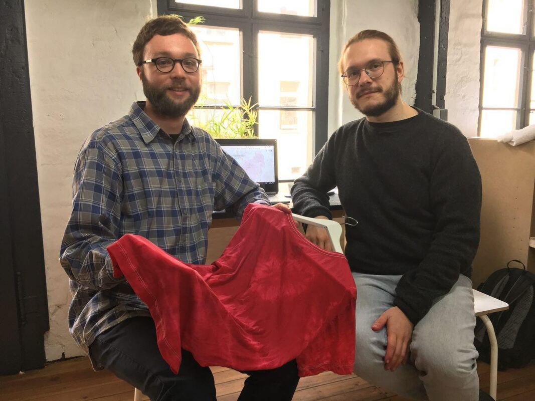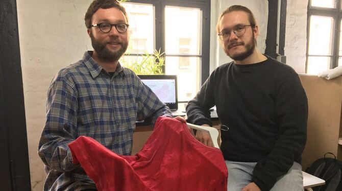 Felix Worpenberg (links) und Micha Kranixfeld sammeln Geschichten über die Textilindustrie auf der Alb. Diesen wollen sie, gemeinsam mit Schülern, Gestalt in Form von Kleidungsstücken verleihen. In ihrem Atelier in Leipzig machen sie schon mal »Materialproben«, bevor sie Ende des Monats für zwei Wochen nach Engstingen kommen. FOTO: PRIVAT