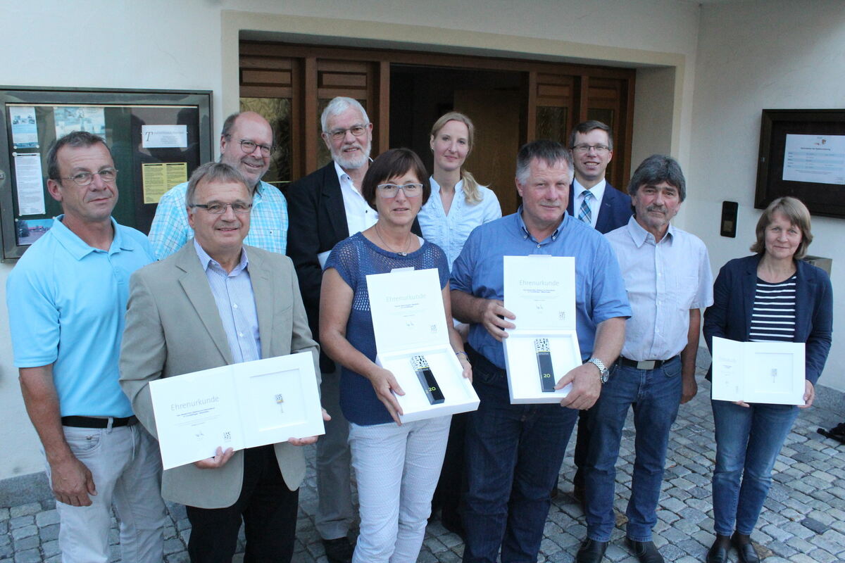 Ehrungen im Stadtrat Trochtelfingen: Alwin Ott, Herbert Hölz, Armin Zeiler, Helmut Mader, Karin Görlich, Bianca Schech, Herbert Stelz, Bürgermeister Christoph Niesler, Franz Vetter und Heike Kozel (von links). Es fehlen Peter Lipp und Walter Rist.