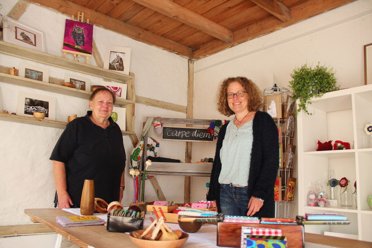 Im Hühnerstall in Dapfen: Bärbel Hölzl (links) kann hier ihre Patchworkarbeiten zeigen. Iris Huber-Steeb freut sich darauf, Kunsthandwerkern aus der Region eine Plattform zu bieten. FOTO: DEWALD