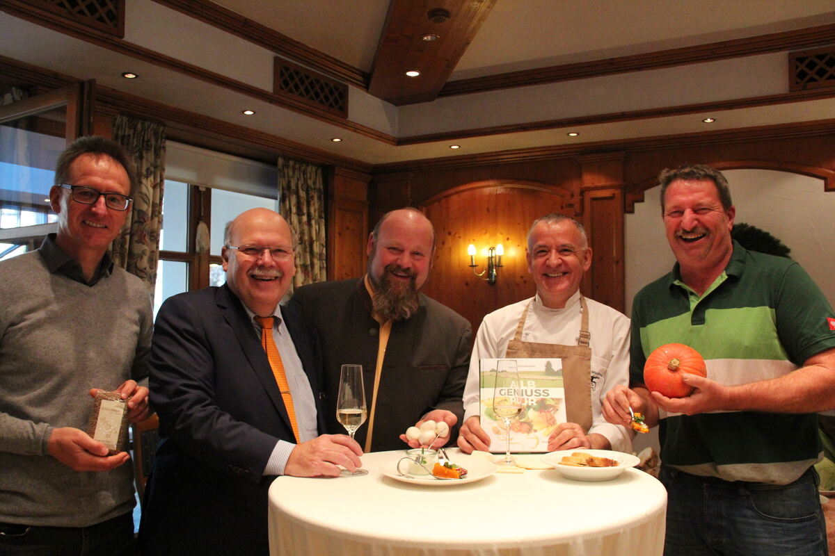 Ins Rampenlicht traten dabei diejenigen, die mit Fleiß und Engagement die Qualitätsproduktion auf der Alb vorantreiben. »Oft im Verborgenen«, wie der Koch sagte. »Oder auf dem Acker«, wie Andreas Werner ergänzte. Von dem Bioland-Gärtner aus Sonnenbühl stammt zum Beispiel die wichtigste Zutat in Windhösels Kürbis-Parfait.