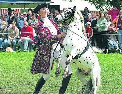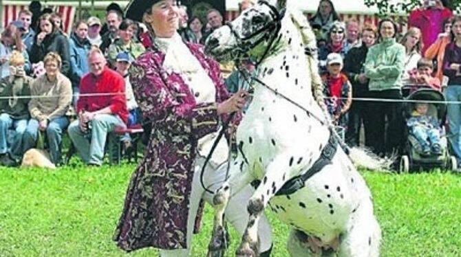 Kleiner Hengst ganz groß: Lancelot und Besitzerin Sabine Ellinger präsentieren auch Elemente der Hohen Reiterschule.