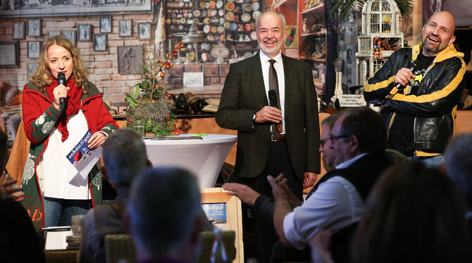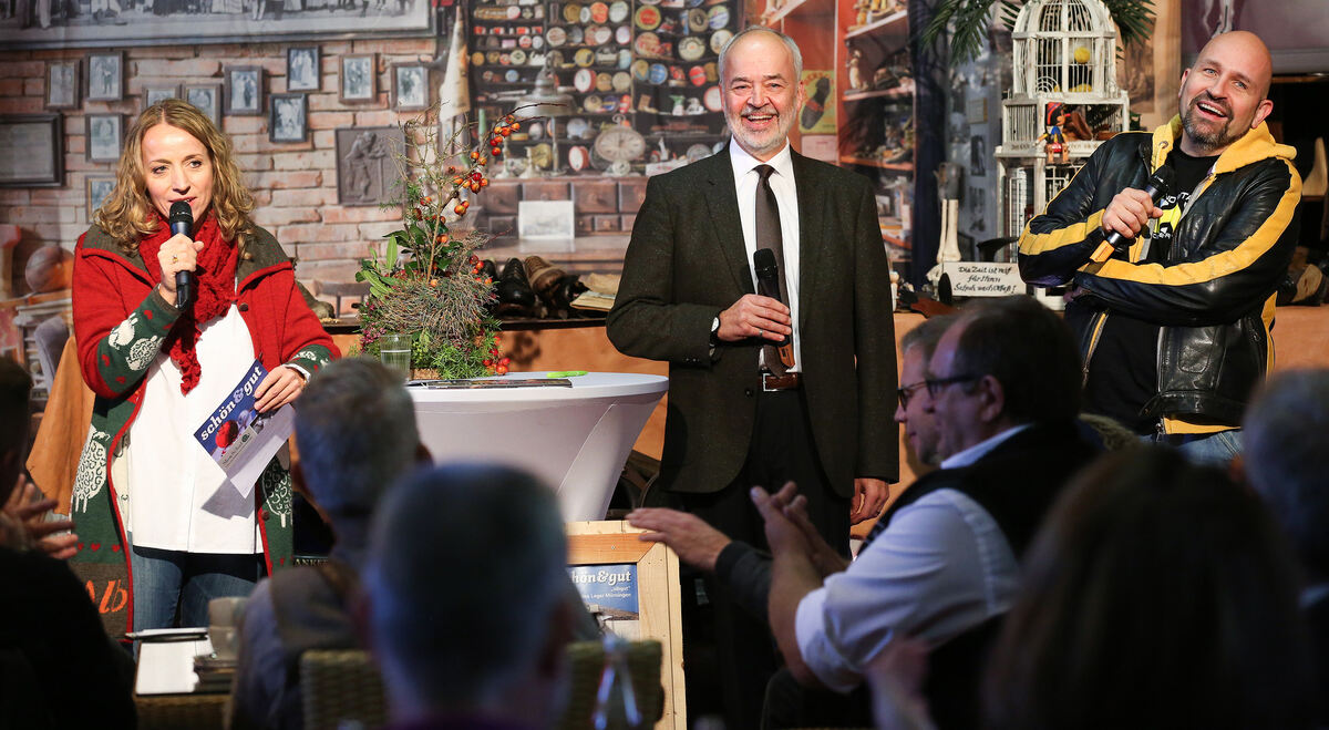 Messe-Veranstalter Stephan Allgöwer von der Reutlinger Solutioncube jedenfalls hatte allen Grund zur Freude und teilte diese beim Eröffnungstalk im »Alblust-Treff« mit Landrat Thomas Reumann und Dominik Kuhn, alias Dodokay, die sich von Iris Goldack Liebeserklärungen an ihre Heimat, also die Schwäbische Alb, entlocken ließen. Und dort ihre Lieblingsplätze verrieten. Während Reumann am liebsten auf dem ehemaligen Schießplatz »Ruhe hören« geht, haben es dem Reutlinger Comedian und Multitalent Dodokay »Zivilisationsreste« wie alte Tunnel, Bunker und Stollen angetan – und die spitzen Kehren der Honauer Steige: »Des fend i oifach subr.«
