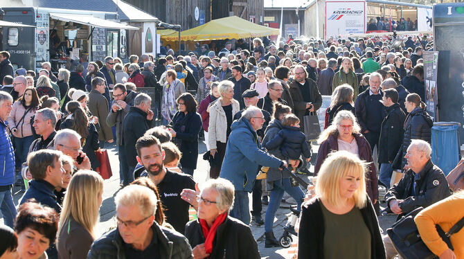 »Der reine Wahnsinn ist das«, kommentierten glücklich auf dem Messegelände Angekommene bereits zur frühen Mittagszeit, nachdem sie sich im kilometerlangen Konvoi Stoßstange an Stoßstange mit ihren Autos bis zum Parkplatz auf dem Place de France vorgekämpft hatten. Wer klug war – und das waren erfreulicherweise doch einige – nutzte das an allen Messetagen kostenlose Busshuttle ab Münsinger Bahnhof, kam zu Fuß oder per Rad. Oder stellte seinen Wagen bereits weit vor den Toren des ehemaligen Militärgeländes ab, was freilich auch dazu geführt hat, dass privates Terrain und auch Zufahrten blockiert wurden.