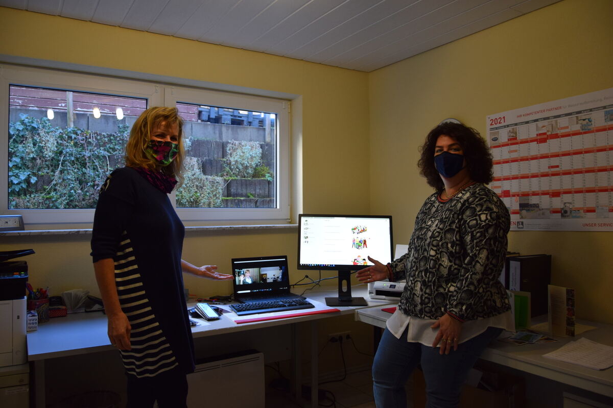 Silke Krüger und Stefanie Feller vor der Homepage, Sonja Ehni ist online zugeschaltet.