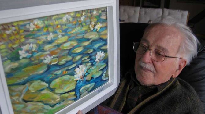 Der in Hayingen lebende Kunstmaler Reinhold Weber, 91, zeigt am Wochenende seiner Bilder ein letztes Mal in der »kleinen Alb-Galerie«.