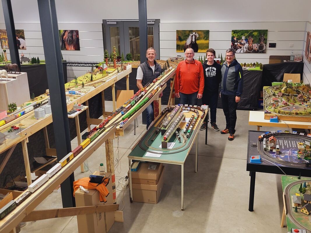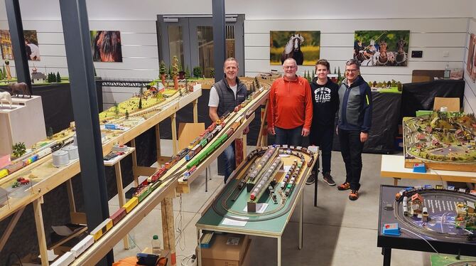 Wolfgang und Heiner Ott, Phil und Ralph Karmann (von links) sprachen mit ihrer Modellbahnausstellung in Marbach viele Besucher an.