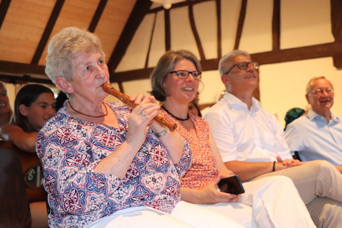 Für eine emotionale Überraschung mit einem Ständchen für seine Mutter sorgte Bernd Schneider, der selbst schon einmal an der Musikschule unterrichtet hat. Spontan fielen die Musikschullehrer mit ihren Instrumenten ein und sogar Ulla Schneider griff zur Flöte. So hat sie sich mit dem verabschiedet, was ihr als Leiterin der Musikschule Hohenstein immer am meisten am Herzen lag: Musik. (in)