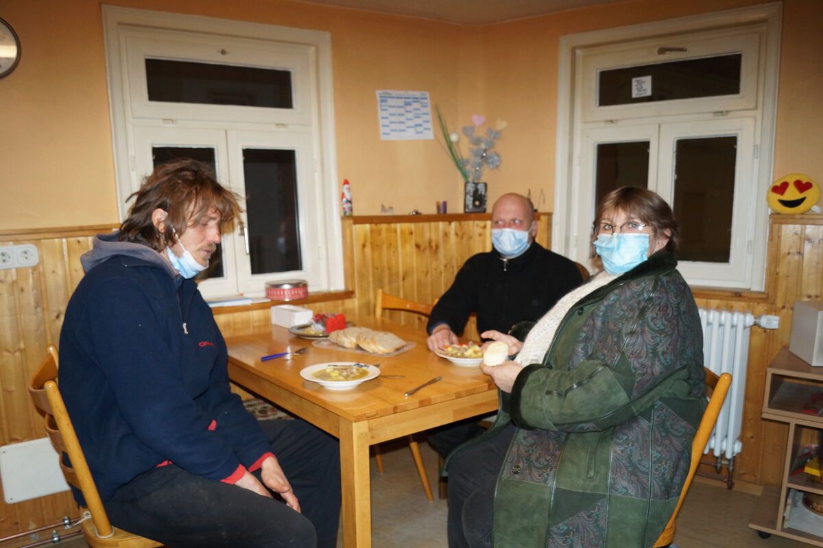 Tommi (links) und Marc lassen sich den Eintopf von Lina Kirsammer schmecken. FOTO: WURSTER