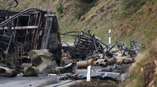 Gegen Mittag war das Feuer gelöscht. »Die Lage selbst ist mittlerweile unter Kontrolle«, so Martin Raff als Pressesprecher des Polizeipräsidiums Reutlingen. Aktuell sind die Feuerwehren aus Trochtelfingen, den Stadtteilen und aus Engstingen vor Ort. »Wir sind knapp an einer Katastrophe vorbeigeschrammt«, sagt ein sichtlich schockierter Trochtelfinger Bürgermeister Christoph Niesler, der an der Unfallstelle die Löscharbeiten beobachtete. (lejo/pol)