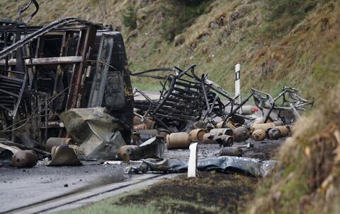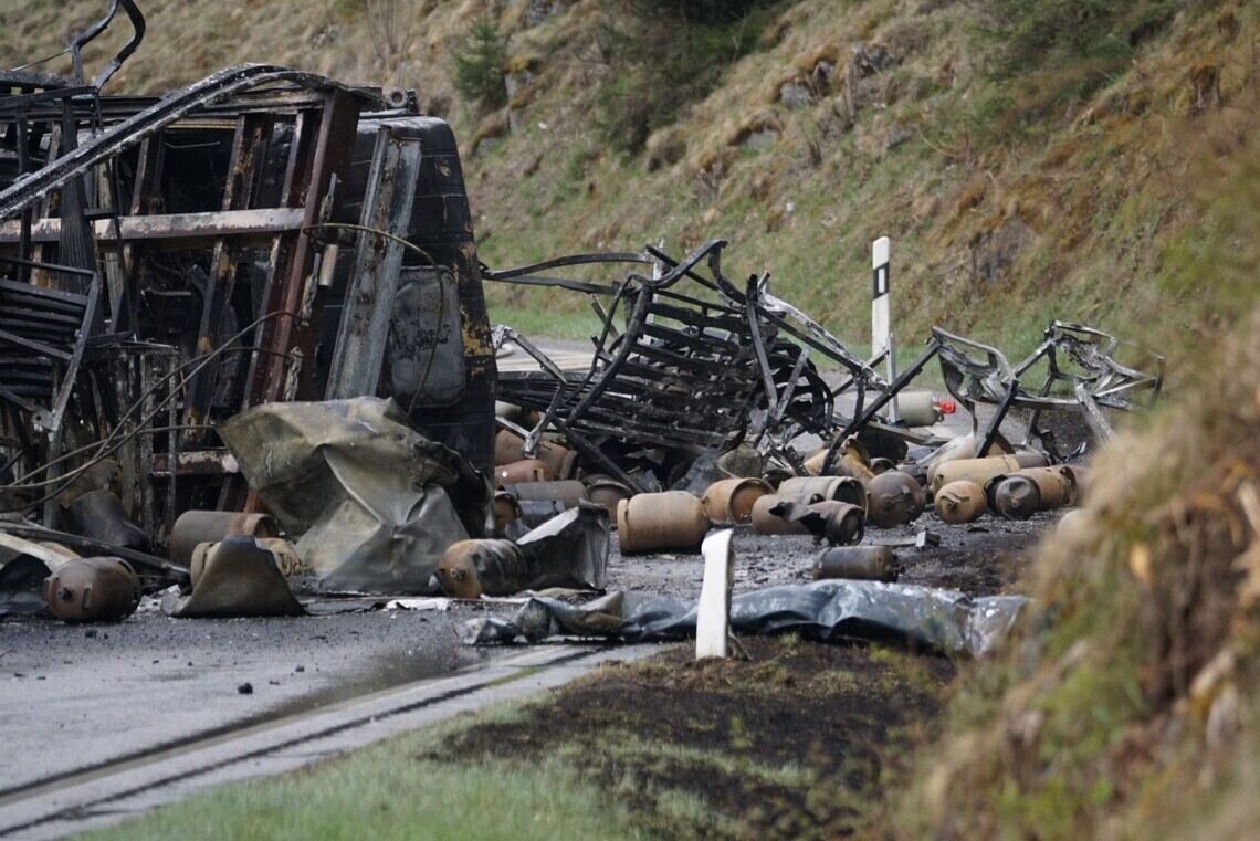 Der Lkw kippte auf die Seite und fing sofort Feuer, worauf nach und nach »mehr als 300 Gasflaschen«, so die Feuerwehr, explodierten. Zuvor hatte sich der 39-jährige Fahrer mit »mittelschweren Verletzungen« in Sicherheit bringen können. Der Lastwagen hatte dem Vernehmen nach 342 große und kleine Gasflaschen geladen. Teile flogen bis zu 250 Meter weit, rund 150 Feuerwehrmänner und -frauen waren im Einsatz. Die Menschen, die rund um Unglückstelle leben, wurden evakuiert. Der Fahrer konnte sich noch verletzt aus seinem Fahrzeug retten. Er wurde in ein Krankenhaus gebracht.