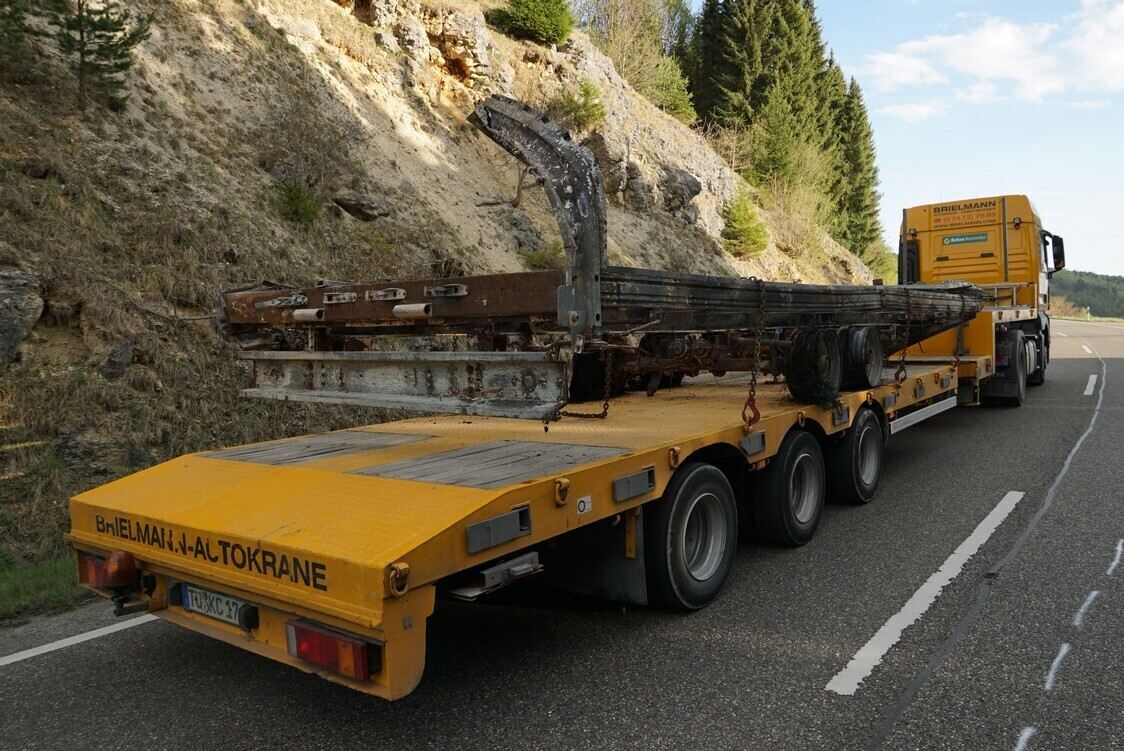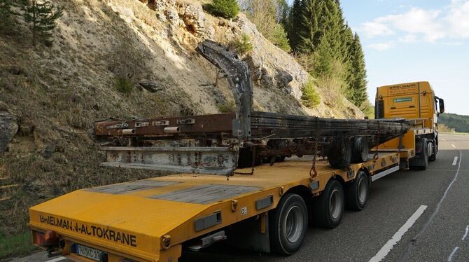 TROCHTELFINGEN. Auf der B313 ist am Montagmorgen ein Lastwagen umgekippt und in Flammen aufgegangen. Knapp sieben Stunden dauerte die Bergung. Marco Pasetto, Seniorchef des gleichnamigen Berge- und Abschleppdienstes, und seine elf Mitarbeiter waren mit einem 80-Tonnen-Kran und einem Bagger von 14.30 Uhr bis kurz nach 21 Uhr damit beschäftigt, »den auf dem Asphalt festgeklebten Lastkraftwagen« zu entfernen. Die Bundesstraße 313 zwischen Trochtelfingen und Engstingen-Haid wird voraussichtlich noch mehrere Tage lang gesperrt bleiben.