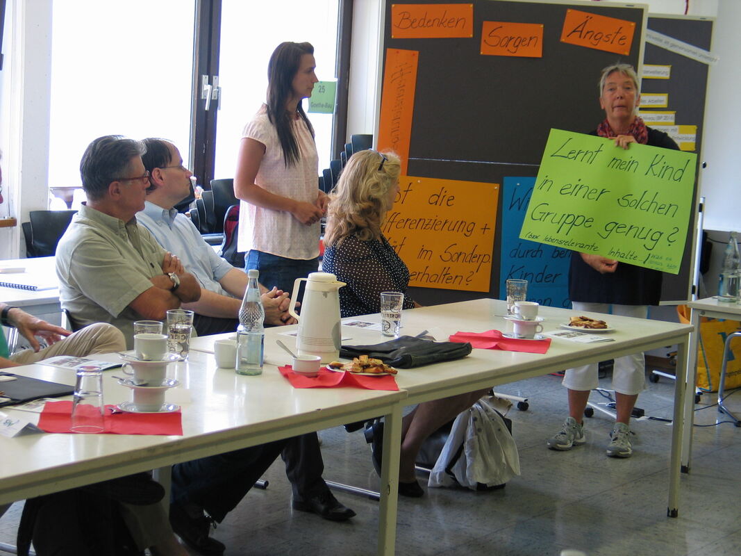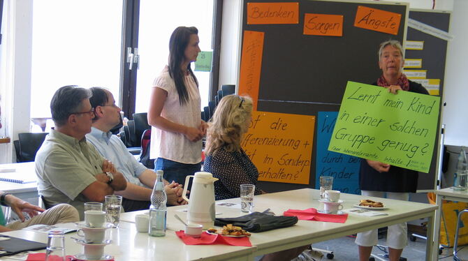 Eva Mattes (rechts) und ihre Kollegin Jessica Buchfink hatten gestern Gelegenheit, den Mitgliedern des Schul- und Kulturausschusses des Kreistags ihren Umgang an der Schillerschule in Münsingen mit Diversität vorzustellen. FOTO: OELKUCH