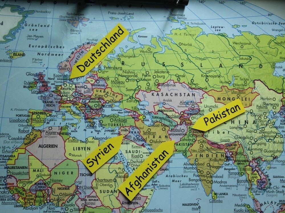 Wo Flüchtlinge und Asylbewerber derzeit vielfach herkommen, haben Kinder auf einer Weltkarte markiert. Die Sternbergschule Gomadingen will mit dieser und weiteren Aktionen bei den Schülern Verständnis für ihre neuen Mitbürger wecken. Wie in Gomadingen soll auch in Gammertingen für die Betreuung und Begleitung der Flüchtlinge ein lokales Netzwerk aufgebaut werden. GEA-FOTO: DEWALD