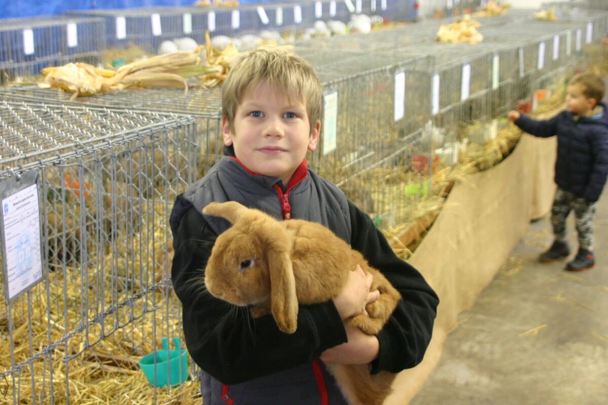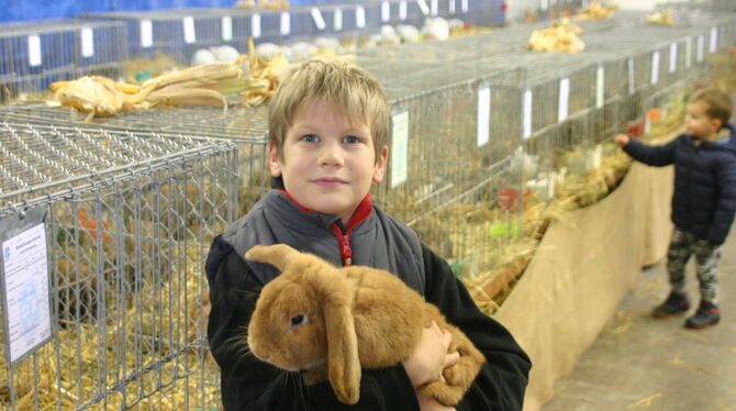 Der begeisterte Kaninchenzüchter Lukas Buchfink aus Großbettlingen ist bei der Widderclubschau mit seinem Kleinwidder gelb Rassemeister geworden. FOTO: KÖPER