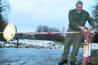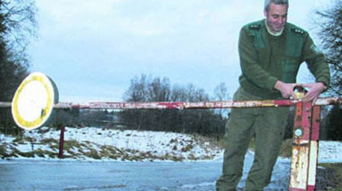 Revierförster Norbert Högel an einer der Schranken, die künftig die sechs Zufahrtsstraßen in den Engstinger Standortübungsplatz sperren. Sie sollen vor allem Müllsünder und andere Tunichtgute draußen halten. Spaziergänger dürfen weiterhin kommen.