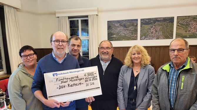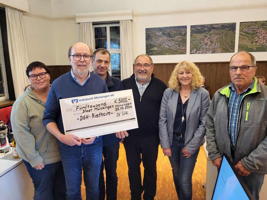 Dass auch die Vereine ihrerseits die Stadt Münsingen unterstützen, macht die Spendenübergabe der Rietheimer Vereine zugunsten des Bauvorhabens Dorfgemeinschaftshaus in Höhe von 5.000 Euro deutlich. »Wir helfen der Stadt, wenn im Ort etwas Großes entsteht«, betonte Ortsvorsteher Gerd Söll.
