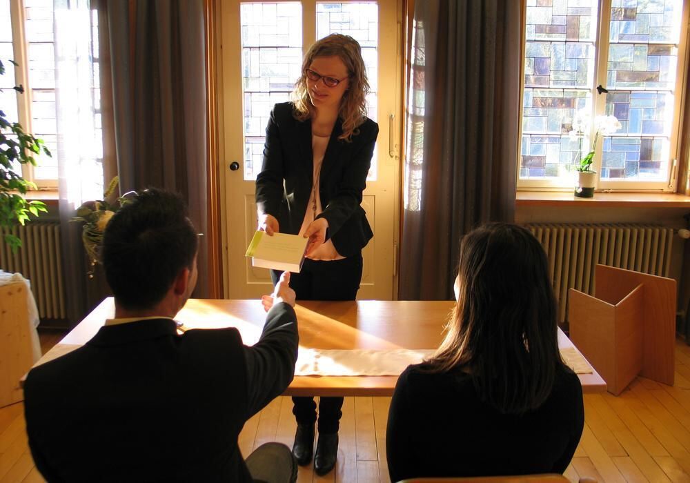Standesbeamtin Gabi Stolz und ihre Kollegen können Brautpaare künftig mit einem »Münsingen-Geschenk« zur Eheschließung gratulieren.