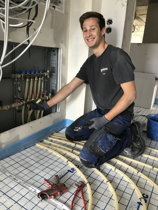 Abitur und was dann? Jonas Klink entschloss sich bereits vor seinem Abschluss für ein einwöchiges Praktikum bei einem Heizungsbauer in Esslingen. »Ein guter Bekannter von mir, der lange Zeit im SHK-Bereich selbstständig war, berichtete mir von der unglaublichen Vielfalt und dem abwechslungsreichen Arbeitsalltag dieses Berufs. Und so entschloss ich mich erst einmal für ein Praktikum, bevor ich mich bei der Gerhard Leicht GmbH nach dem Abi bewarb«, erzählt Jonas Klink von seinem Weg ins Handwerk.