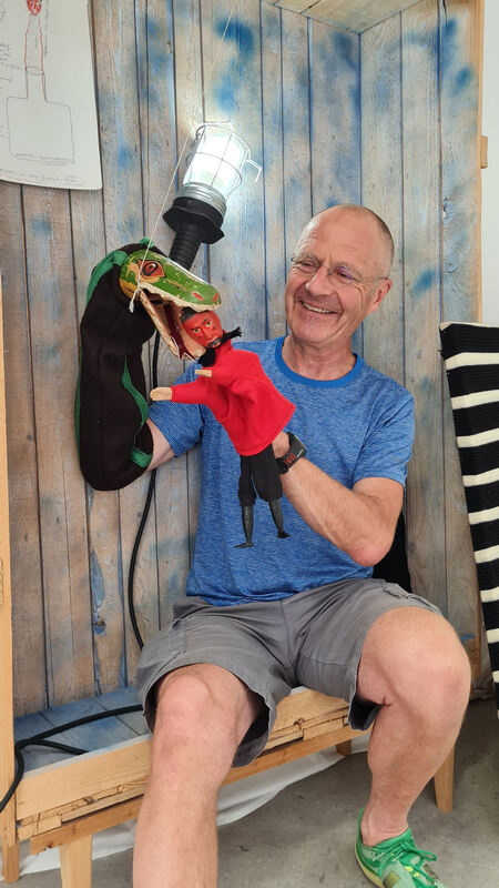 Edgar Braig hat seinen Kindheitshelden, Kasperl und demTeufel einen Schrein gebaut. Er ist Teil der Ausstellung, die mit jedem Bild, das er für Besucher malt, wächst. Das »Pferdle« gehört dazu genauso wie Dschungelbuch-Figuren, Superman oder ein Einhorn.