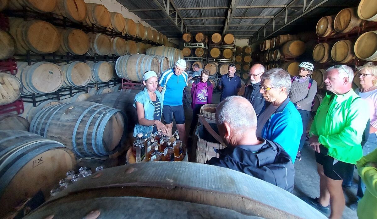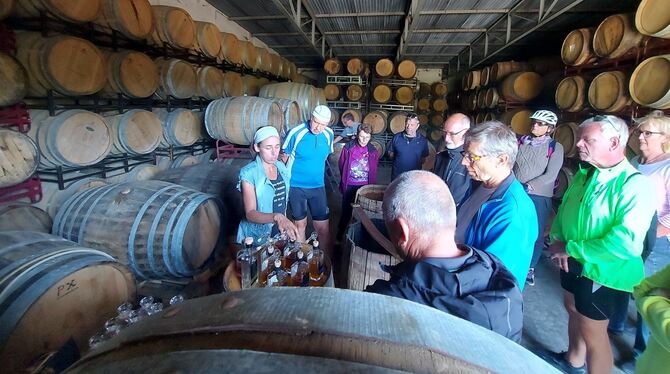 Die exklusive Radtour für GEA-Abonnenten über den ehemaligen Truppenübungsplatz führte unter anderem zum Turm Heroldstatt und in einen Whisky-Bunker von Hans-Gerhard Fink. Der Landwirt aus Heroldstatt hat das ehemalige Gelände der Franzosen gekauft und baut jetzt in den Bunkern, in denen früher Sprengstoff lagerte, seine »Finch«-Whiskys aus.