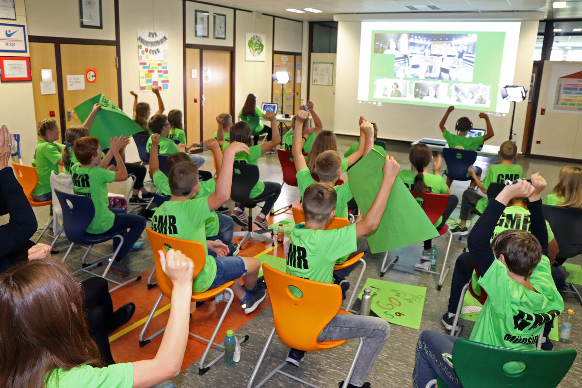 MÜNSINGEN. Die SWR-Spiele-Show »Tigerenten Club« wird am Samstag, 29. August, 10.45 Uhr, im KiKa und am Sonntag, 30. August, 7.05 Uhr, bei Check Eins im Ersten ausgestrahlt. Zu Gast sind die zwei Weltklasse-Athleten Mathias Mester und Niko Kappel. Die beiden Paralympics-Gewinner unterstützen die Schülerteams, die zugeschaltet von zu Hause aus gegeneinander antreten. Das sind Schüler vom Solitude-Gymnasium in Stuttgart und von der Gustav-Mesmer-Realschule in Münsingen. Es geht auch um den guten Zweck: Die Teams wetteifern um Spendengeld für Projekte von »Herzenssache«, der Kinderhilfsaktion von Südwestrundfunk (SWR) und Saarländischem Rundfunk (SR). Die Frösche, also Luis, Max und Jenny von der Gustav-Mesmer-Realschule, spielen für das Projekt »Mehr Farbe fürs Viertel« (Wackenberg, Saarland) und die Tigerenten unterstützen das Projekt »Manege frei für kleine Artisten« (Blasweiler, Rheinland-Pfalz). (fm)